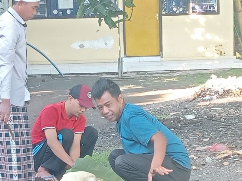 siswa-siswi antusias mengikuti acara penyembelihan dan penyaluran daging qurban kepada tetangga terdekat.